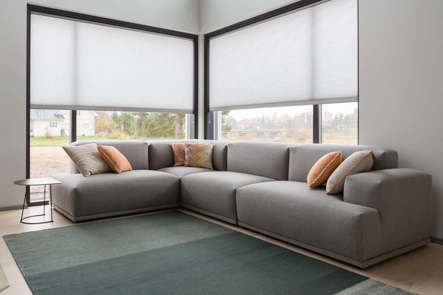 - Duette-kennokangas eli kankaan sisällä on foliolla vuoratut eristävät ilmataskut